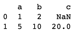 >>>data = [{'a':1,'b':2},{'a':5,'b':10,'c':20}]