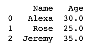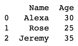 >>>data = [['Alexa', 30],['Rose',25],['Jeremy',35]]