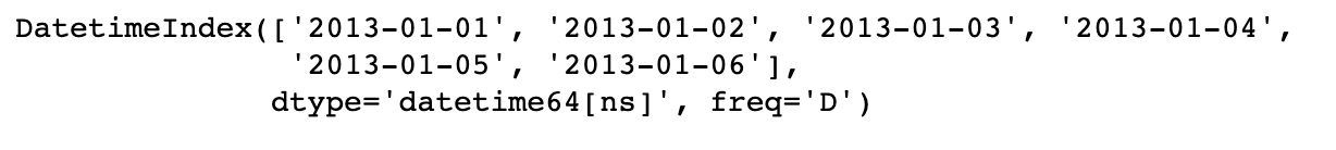 -->> dates는 행 제목을 짓기 위해 만듦. 20130101부터 6개 뽑아오기
