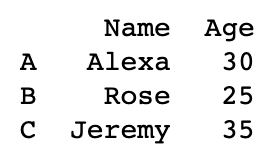 >>>df = pd.DataFrame(data,columns=['Name','Age'],index=['a','b','c'])