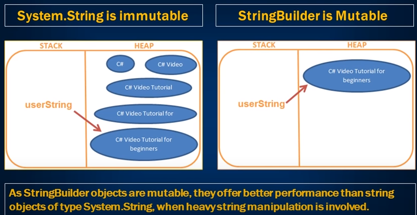 System.String 은 불변성이고 StringBuilder는 가변성을 가지고 있다.