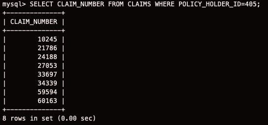 SELECT COUNT(CLAIM_NUMBER) COUNTED