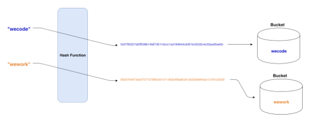 해시테이블은 해시함수와 버킷(bucket)의 리스트로 구현할 수 있는데 위의 wecode 의 해시값인 '283463014a3f8ab829fcf9087ff85d50da1d1bb6' 와 '1234'의 해시값인 '7110eda4d09e062aa5e4a390b0a572ac0d2c0220'을 버킷의 주소인 인덱스를 구할 때 사용하기에는 무리가 있어 보입니다.